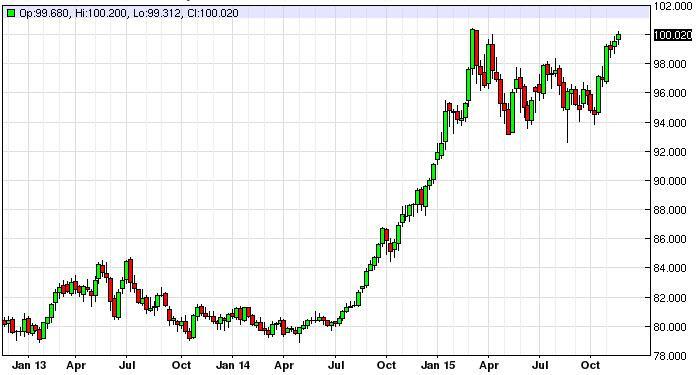 The US Dollar Index had a slightly positive week as we tested the 100 level again. This is an area that will have a lot of psychological significance