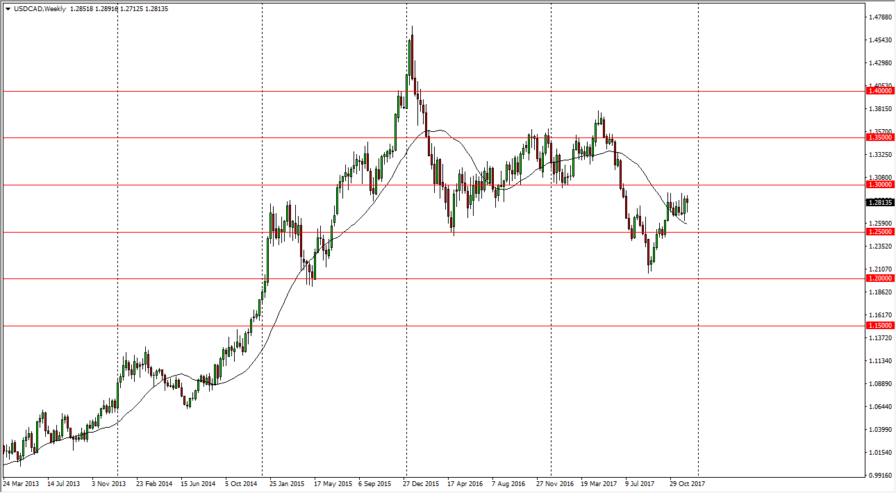 The US dollar continues to be volatile against the Canadian dollar, as we have been consolidating in a very tight trading range. However, we had formed a hammer and that of course is a very bullish sign. A break above the top of the hammer should send this market testing the 1.30 level, a significant area of resistance. I believe that eventually we will find the market breaking above there and reaching towards the 1.35 handle, but it will take some time to get there. The recent rally has been important and impressive, but at the end of the day I think we should continue to see noise as a factor. After all, there are a lot of concerns when it comes to the US tax bill, but at the same time there is a Canadian housing bubble that is just waiting to pop.