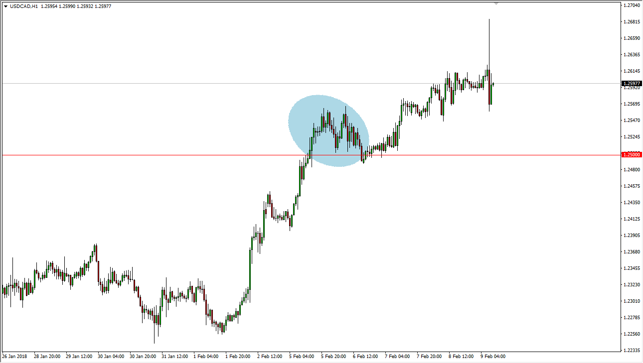 With oil markets tanking around the world, it makes sense that the Canadian dollar was under pressure over the last several sessions. There was a massive spike higher during the trading in the USD/CAD pair on Friday as Canadian employment missed by over 90,000 jobs. While that doesn’t sound like much, in a nation of 30 million, it’s reasonably significant. The question is whether those job losses are going to be more of a permanent thing or is it perhaps due to seasonality.