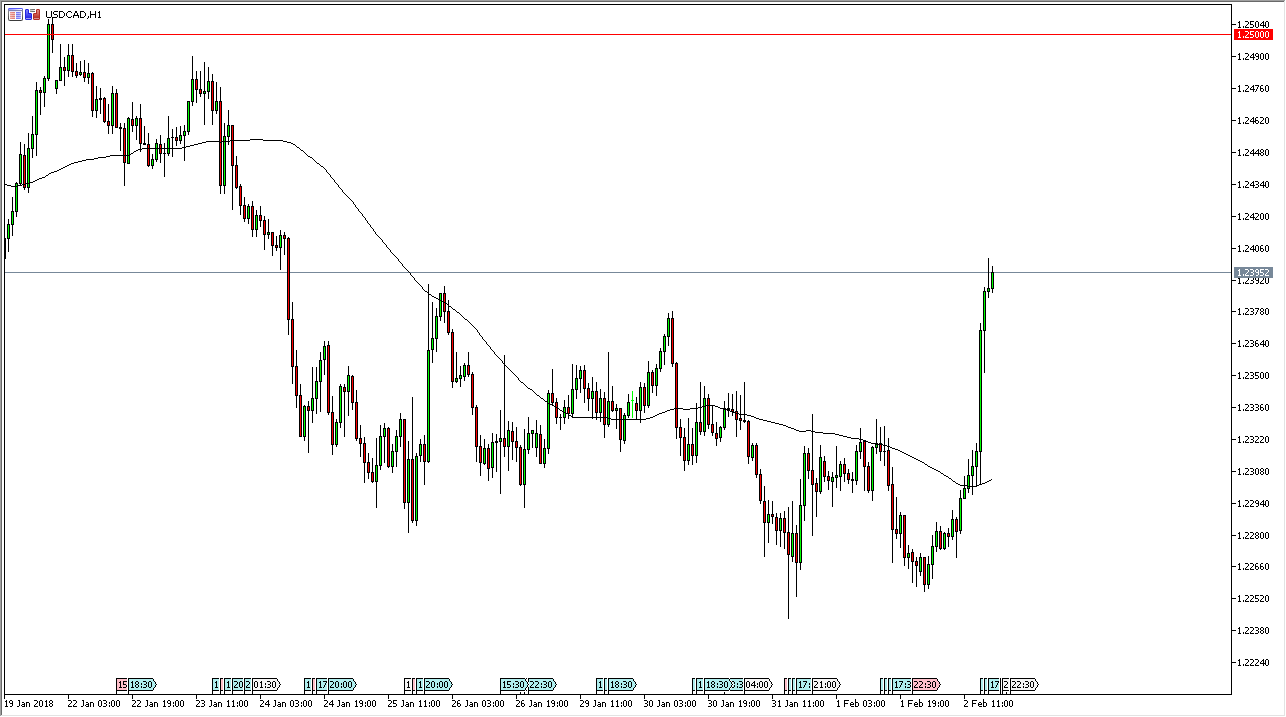 The US dollar exploded to the upside against the Canadian dollar during the trading session on Friday, as the jobs report came out a solid 200,000 jobs at it for the month of January. The 1.24 level offers a lot of resistance, but if we can break above it, the market will more than likely go looking towards the 1.25 level next, with a lot of noise between here and there. We are bit overdone though, so I would not be surprised at all to see a short-term pullback. If we break below the 1.2350 level again, that probably sends this market to lower levels, perhaps reaching towards the 1.2275 level again.