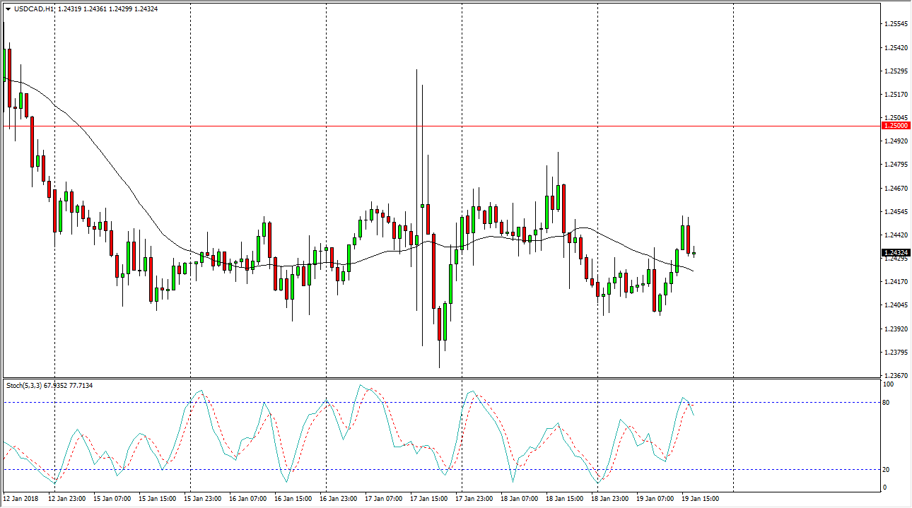 Ultimately, oil has it say as well, but oil is taking a 2nd seat to the NAFTA situation. I think that short-term back and forth trading should continue to be the overall attitude of this market. I believe that the market continues to see choppiness, so use something like a stochastic oscillator to give you signals until we break above the resistance at 1.25, or the support at the 1.24 level. In the meantime, does offer nice scalping opportunities, but you must be nimble and perhaps use very short-term charts to take advantage of this. However, we will eventually break out of this range, and once we do it will be a situation where you can hang on to the trade for a longer-term move, to at least the 1.29 level above, or the 1.20 level on the bottom.