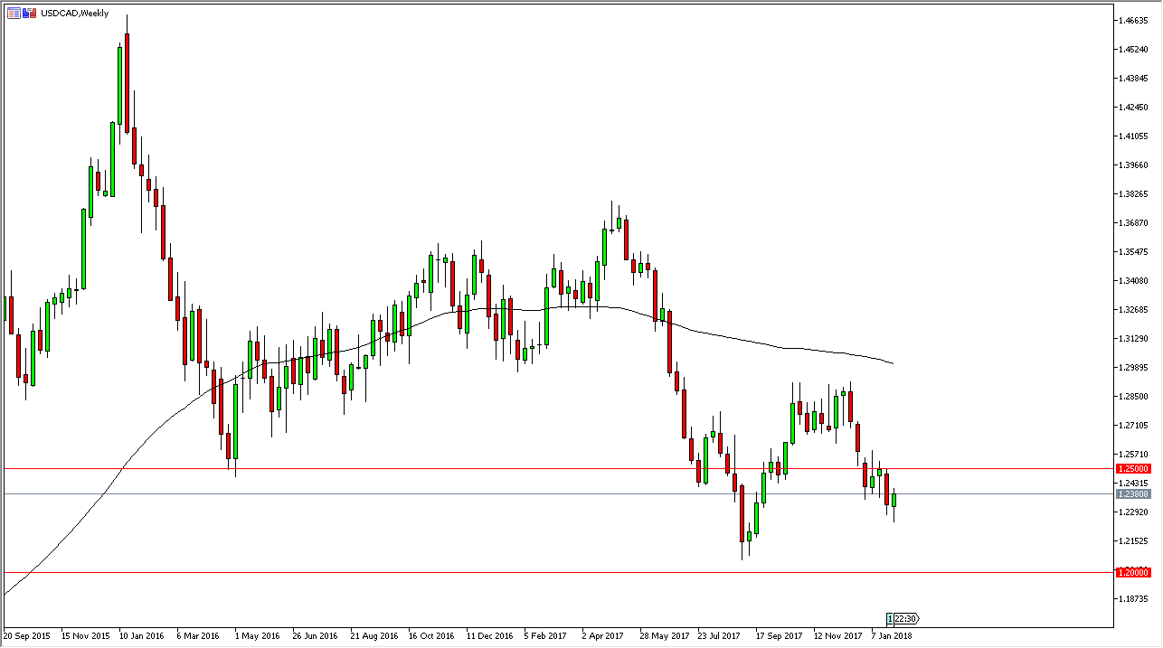 The US dollar has initially fallen during the week but has shown signs of strength to turn around and form a hammer. The hammer of course is a very bullish sign, but I think that the 1.25 level above is very important. There’s also a gap just above there that will continue to put pressure on the market to the downside, so I think the next several of weeks should be very interesting.