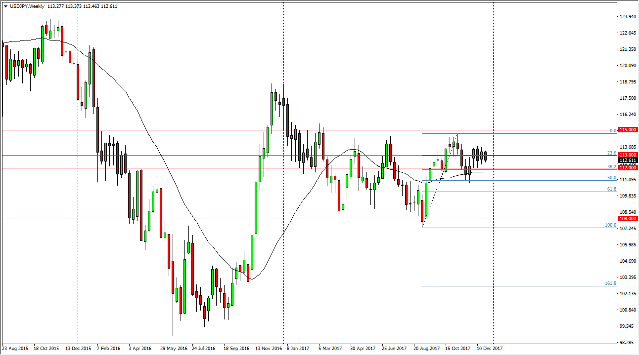 You can see that we spent most of 2017 in a trading range, and although it looks like we could be in a smaller trading range right now, we have spent a lot of time towards the top half of that yearly trading range, and that suggests to me that we will eventually see buyers jump in and push this market to the upside. Once we break above the 115 handle, that would be an extraordinarily bullish sign and send this market much higher.