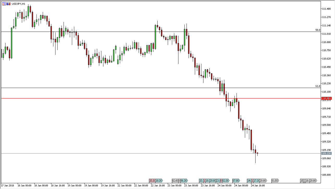 The USD/JPY pair fell significantly during the trading session on Wednesday, reaching down towards the 109 handle. That’s an area that should be supportive, but I think it’s short-term at best. Now that we have sliced through the 110 handle, it’s likely that we will wipe out the entire move to the upside that we had previously seen.