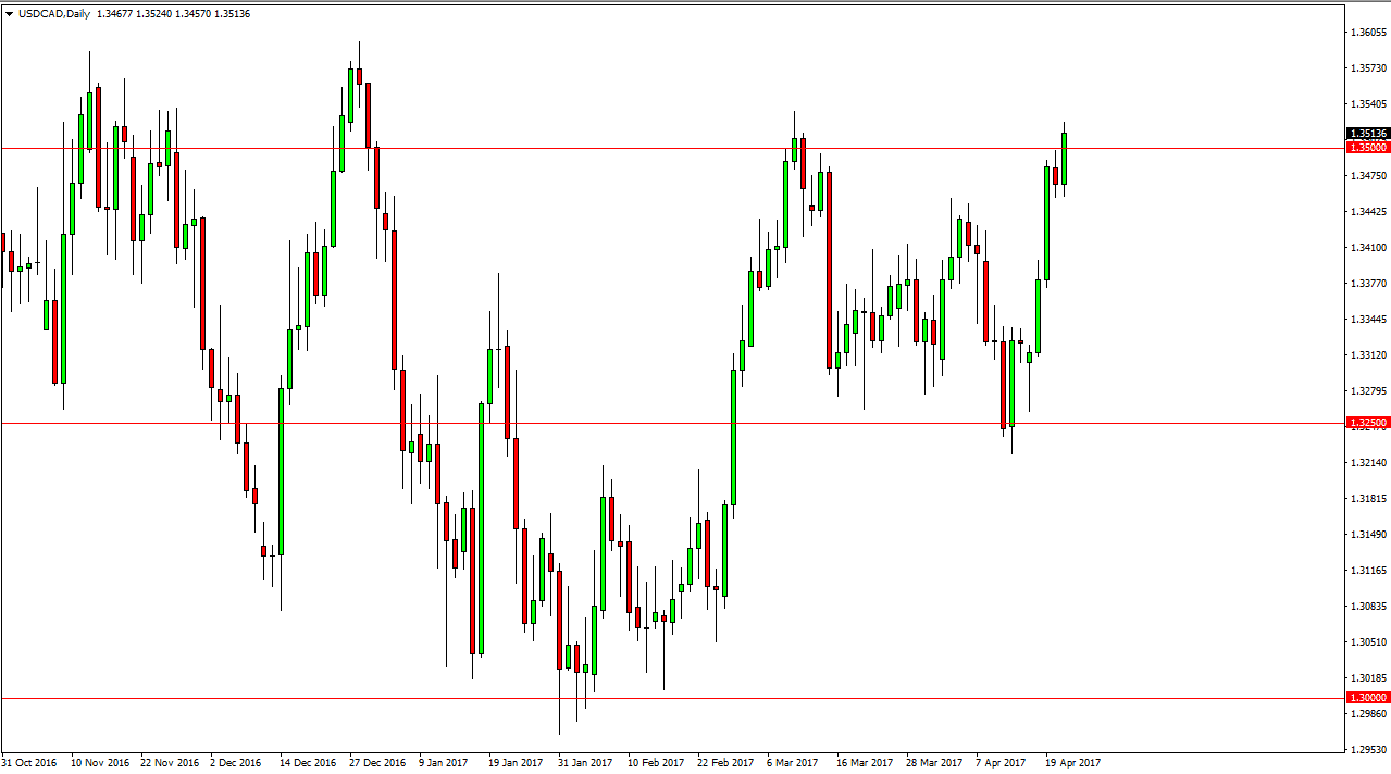 The US dollar rallied against the Canadian dollar during the session on Friday, breaking above the 1.35 handle again. Ultimately, I believe that this
