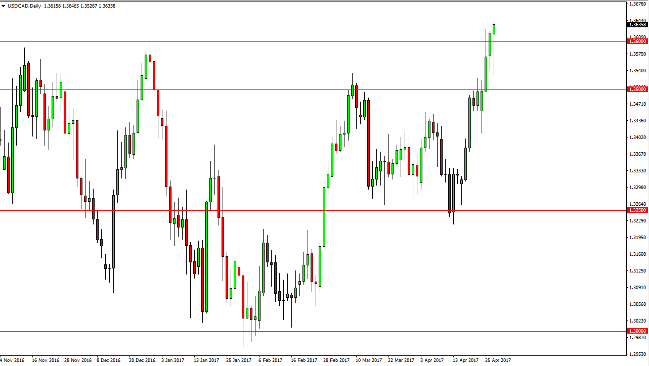 The US dollar has been very volatile against the Canadian dollar during the Thursday session. Initially rallying due to the idea that the US could be