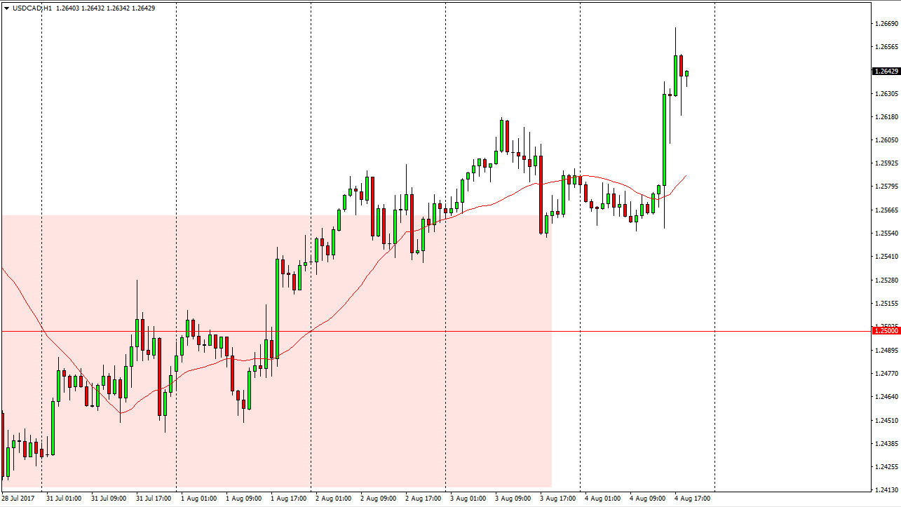 The US dollar initially went sideways during the day on Friday, as we hovered around the 1.2575 level. The market broke higher during the day, slicing through the 1.26 handle, as the US jobs market produced far more jobs than anticipated. At the same time, the Canadian job numbers missed by some few thousand, and that shows that the resiliency in the US economy is picking up. The market has bounced off a major uptrend line on the weekly chart as well, and the “W pattern” that we see from several sessions ago could be the bottom of the selloff. I believe that the market should continue to go much higher and I am a buyer of dips.