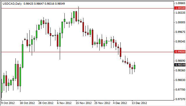 With the fiscal cliff talks going on, it appears that this market will have nowhere to go. The two currencies are very intertwined, as is the two economies. Because of this, it is not surprising at all to see the fact that this pair really doesn’t know what to do with the moment, and as such we need to see significant strength above the 0.9950 level in order to start going long or significant weakness and a break below the 0.98 handle in order to start selling.
