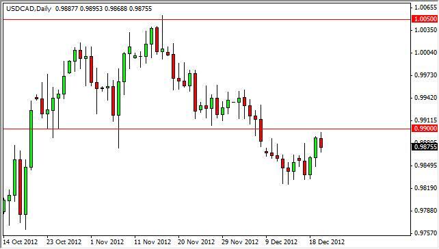 The USD/CAD pair fell from the 0.99 resistance level during the Thursday session as we continue to bounce around in this consolidation box. It appears