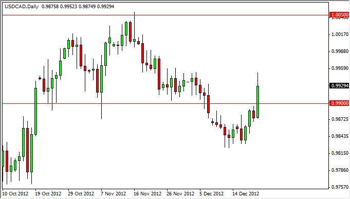 The USD/CAD pair shot through the 0.99 handle during the session on Friday, but failed to close above the 0.9950 level which was our signal to start