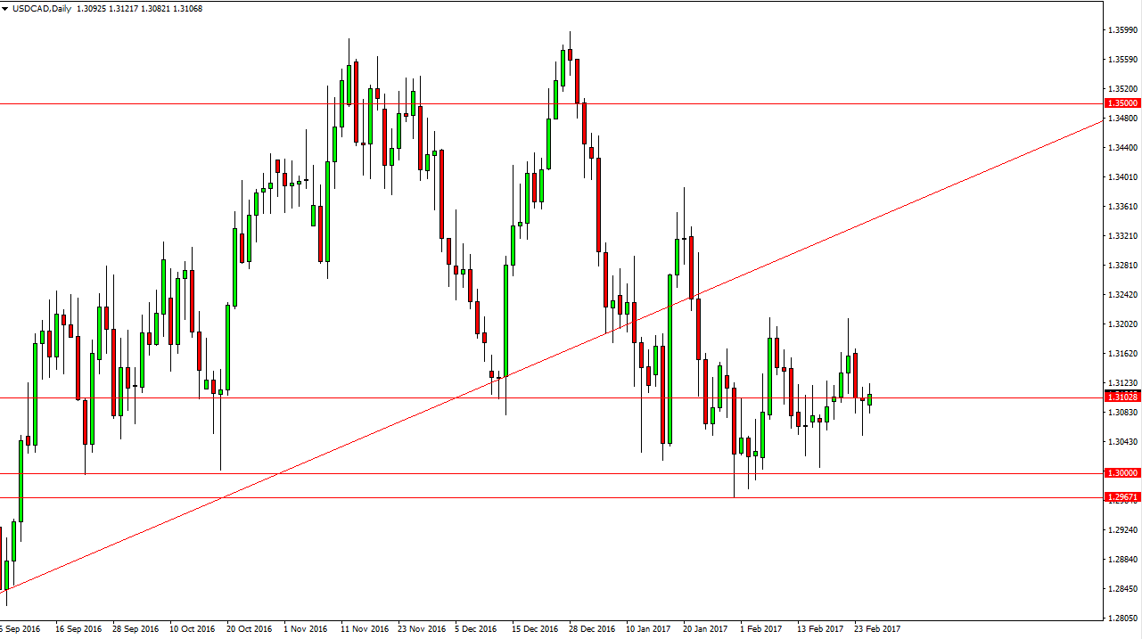 The USD/CAD pair had a slightly positive session on Monday, as the 1.31 level attracted buying pressure. The fact that we formed a hammer on Friday was