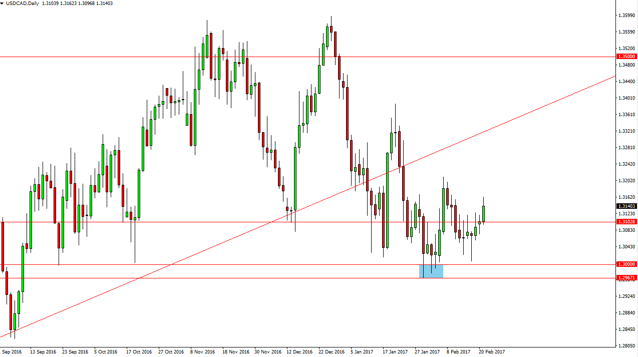 The USD/CAD pair rally during the day on Tuesday, breaking above the 1.31 handle. It looks as if the markets are going to have a significant amount of