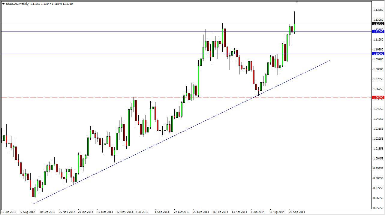 The USD/CAD pair rose during the course of the week, but found enough resistance at the 1.14 level to turn things back around and form a shooting star.