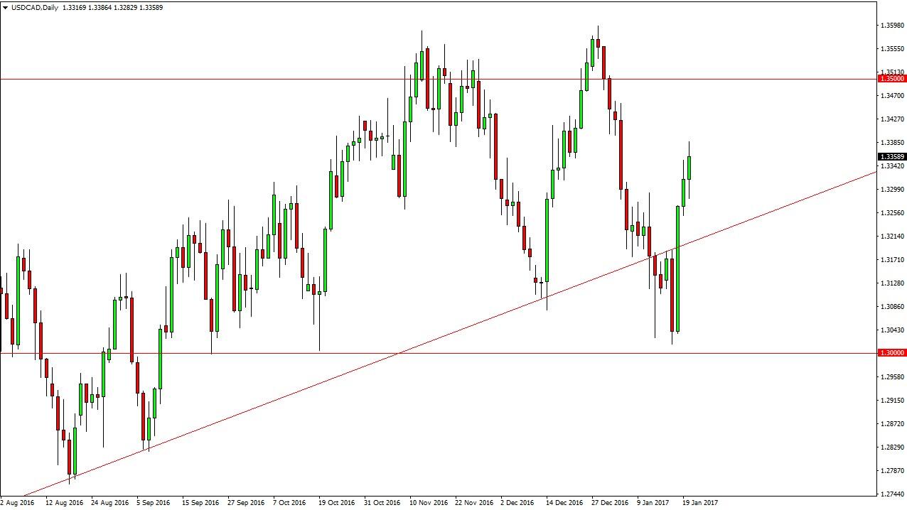 The USD/CAD pair had a positive session on Friday as we continue to grind to the upside. Now that we are broken above the uptrend line that previously had