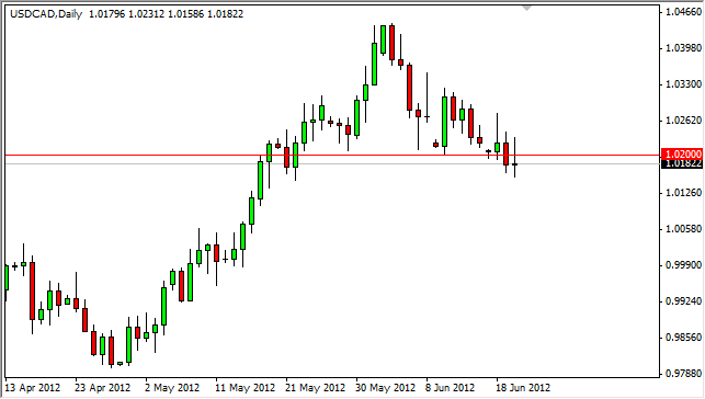 The USD/CAD pair had an interesting session on Wednesday as the pair was at one time bullish, then bearish, and finished the day forming a shooting star. The shooting star for the session does in fact seem to suggest that we are going to fall again. The breaking of the bottom of this candle would be a valid sell signal, and the 1.00 level below looks to be supportive if we do in fact get it. However, there is something very odd about this pair at the moment.