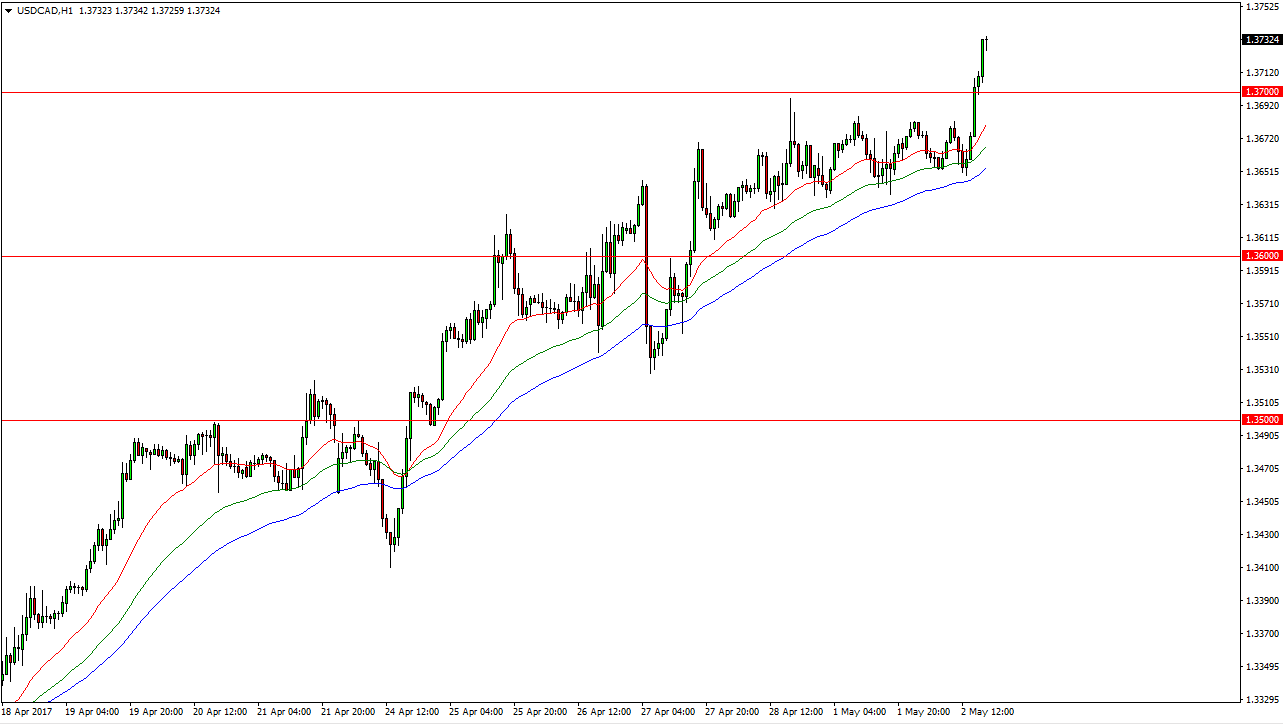The USD/CAD pair broke out rather significantly during the day on Tuesday, clearing the 1.37 level. Oil markets continue to struggle, so having said that