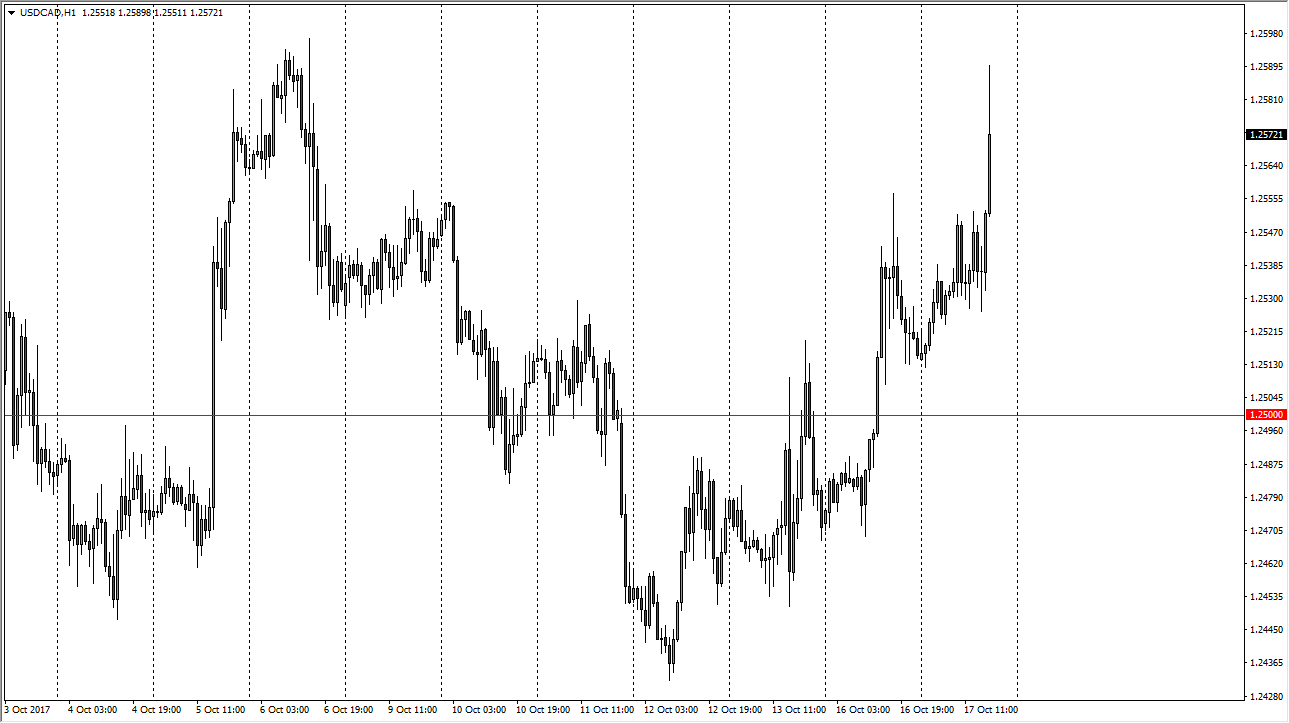 The USD/CAD pair initially went sideways, but then exploded to the upside, reaching towards the 1.26 level. The market pulled back slightly from there,