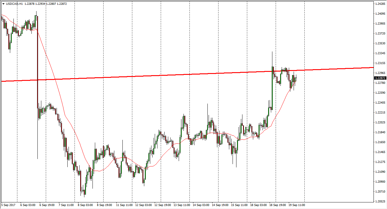 The US dollar chop around against the Canadian dollar during the session on Tuesday, as we are testing the previous uptrend line from the weekly chart. We