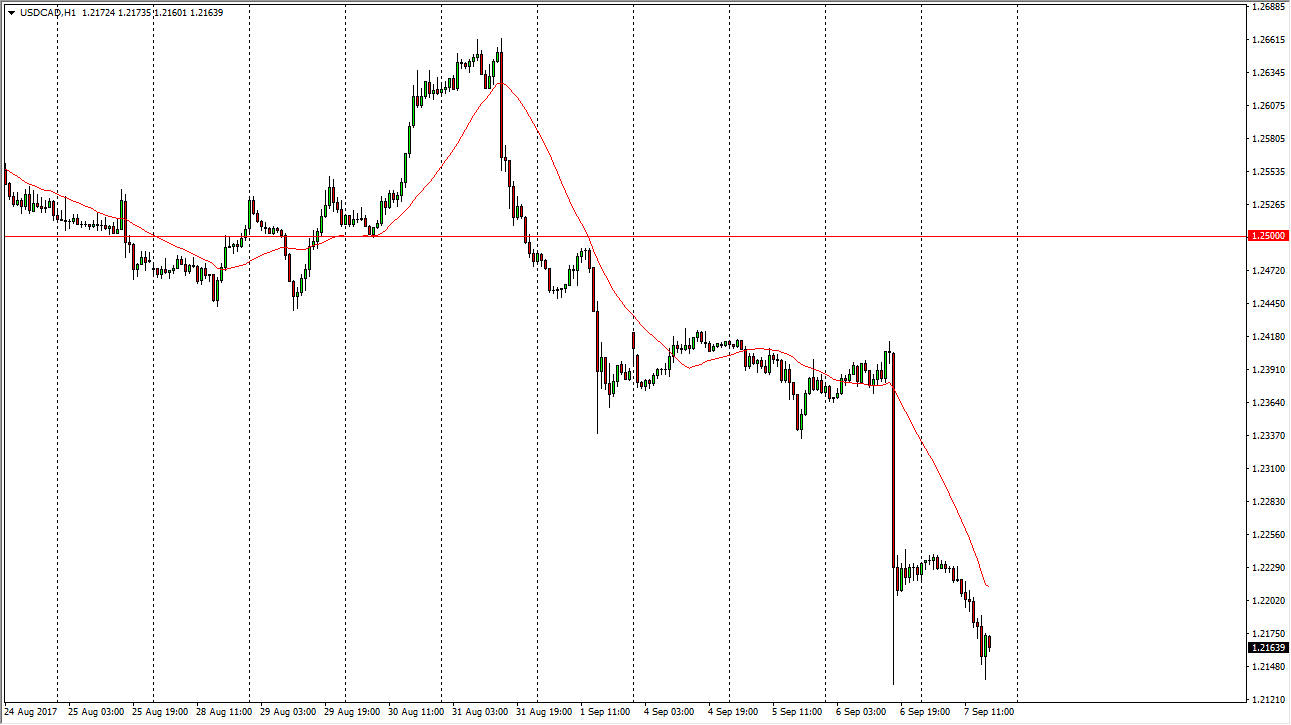 The US dollar fell slightly during the day against the Canadian dollar on Thursday as we continue to see the fallout from the surprise interest rate hike in Ottawa. Longer-term, I believe that the market is going down to the 1.20 level, which is the next significant support level, and I think that rallies will be nice selling opportunities in a market that certainly is very bearish. We recently have broken below an uptrend line on the weekly charts, and at this point the 1.20 level is the next obvious support level that the market will probably go looking towards.