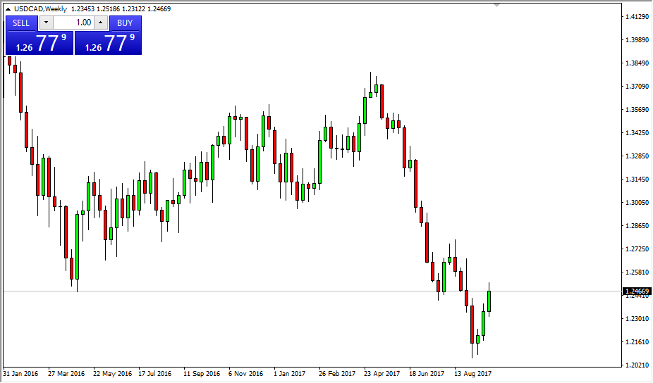 The USD/CAD pair rallied during the week, breaking above the 1.25 level at one point, but this is an area that I expect to see a lot of resistance at. We have recently broken down below and uptrend line on the weekly chart, now I think were testing that area. We could find ourselves rolling over from here, and if we do at that we have much further to go. I would suspect that we would go to at least 1.21 level next, and I believe that at that point, the 1.20 level would be all but assured. However, if we managed to break above the 1.27 level, that would be very bullish for the US dollar. Keep in mind that the oil markets of course have an influence on the Canadian dollar, but recently I think most of this has been due to the bond trade more than anything else. Bond traders have been shorting US bonds, while buying Canadian bonds. This has a massive amount of money flowing back and forth across the border, and that of course has a massive effect on the Forex markets.