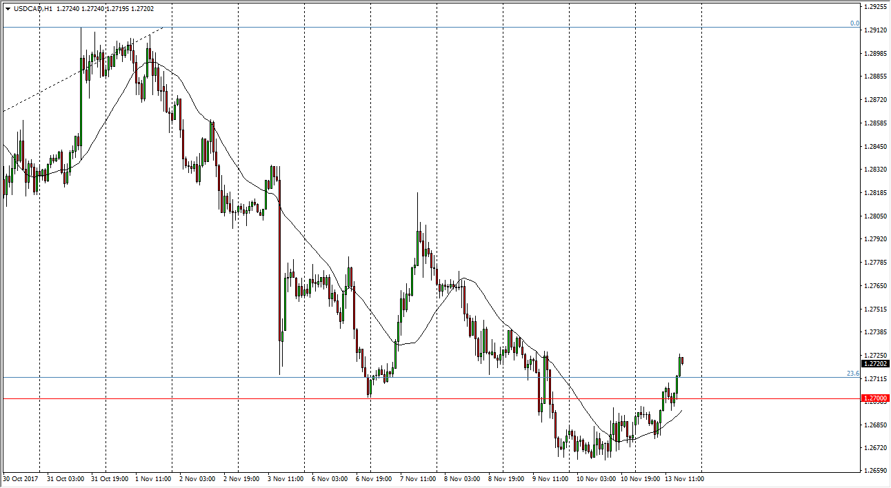 The US dollar rallied a bit against the Canadian dollar during the Monday session, breaking above the 1.27 level. As we are doing this, I believe that the market is trying to continue the recent uptrend that we had seen over the last several months, and if the oil markets can rollover a bit, that could give us an opportunity to go even further. At this point, I become much more comfortable going long at the 1.2750 level, as it should then send this market looking for the 1.28 handle, and then the 1.29 level. Overall, I don’t like the Canadian dollar, but I recognize that there are a lot of concerns when it comes to tax reform in the United States, and it probably needs to see some type of agreement or perhaps even in combination with the oil markets rolling over to get significant momentum to the upside. However, the underlying issue with the Greater Toronto Area housing bubble I think is going to be one of the major stories and 2018.