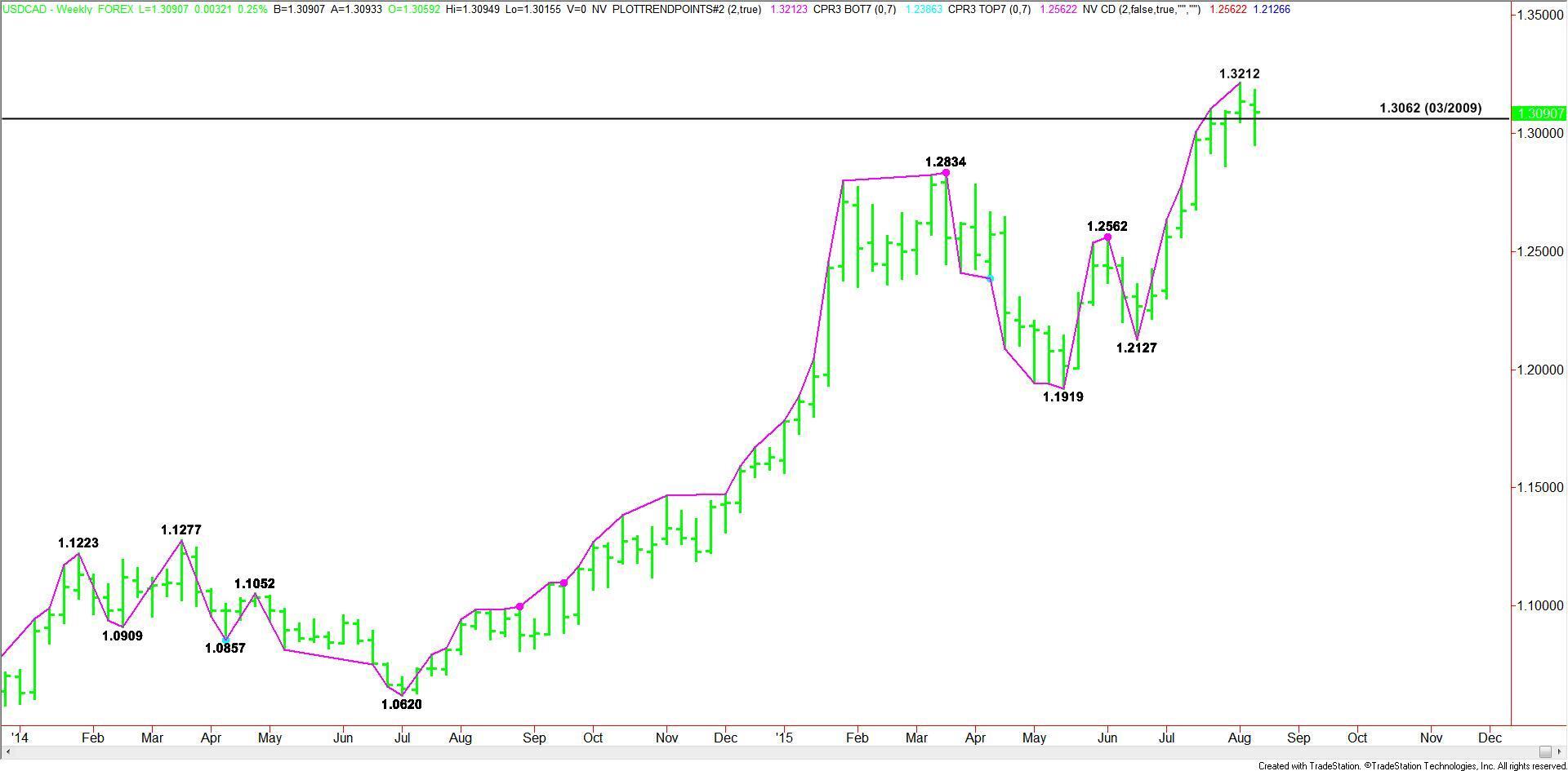 Supporting this conclusion is the steep break from 1.3181 on August 10 to 1.2951 on August 12. This sell-off corresponded with bearish comments from Federal Reserve Vice Chairman Stanley Fischer who suggested on Monday, August 10 that a September rate hike by the central bank is not a done deal. This comment may have been enough to encourage long investors to take a little bit off the table after rallying from 1.2127 the week-ending June 19 to 1.3212 the week-ending August 7.