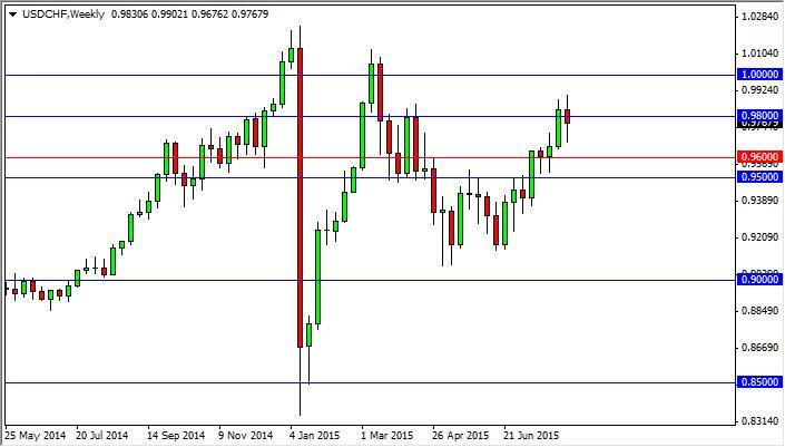 The USD/CHF pair initially fell during the course the week but did bounce around to show signs of volatility. The ultimate candle of course is a bit of a