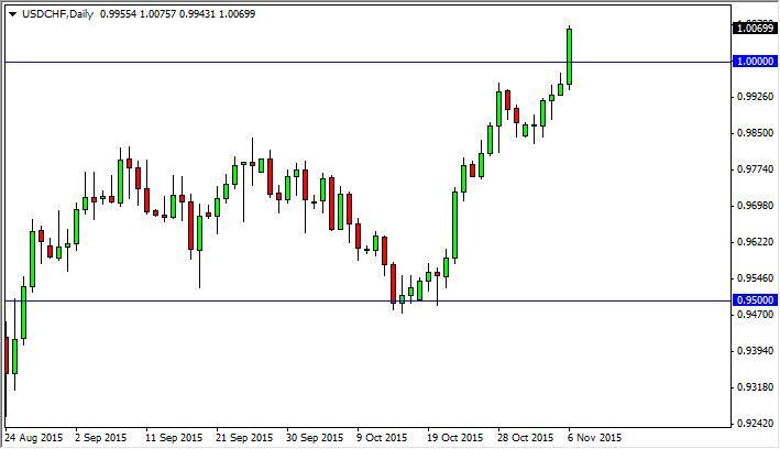 The USD/CHF pair broke higher during the course of the session on Friday, breaking above the parity level. That of course is a very bullish sign, so