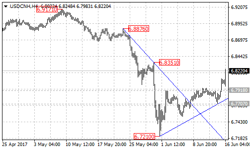 However, as long as the pair is below 6.8450 resistance, the rise from 6.7210 would possibly be correction of the downtrend from the May 9 high, and another fall towards 6.6500 is still possible after the correction.
