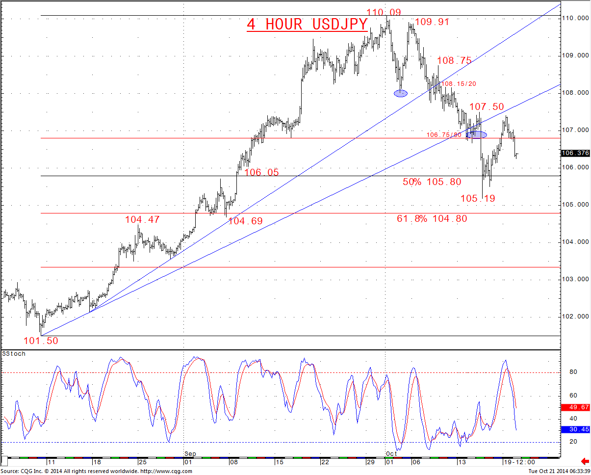 Into midweek, we see bias for a roll back lower, for 106.15 and 105.50.