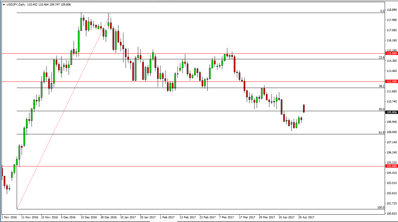 The USD/JPY pair gapped higher at the open on Monday, but has spent most of the session trying to retrace that gap. Because of this, I believe that the
