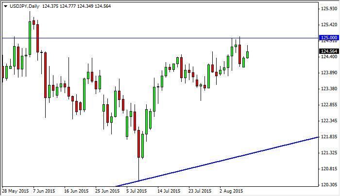 The USD/JPY pair broke higher during the course of the day on Monday, but as you can see still continues to struggle near the 125 handle. With this, we