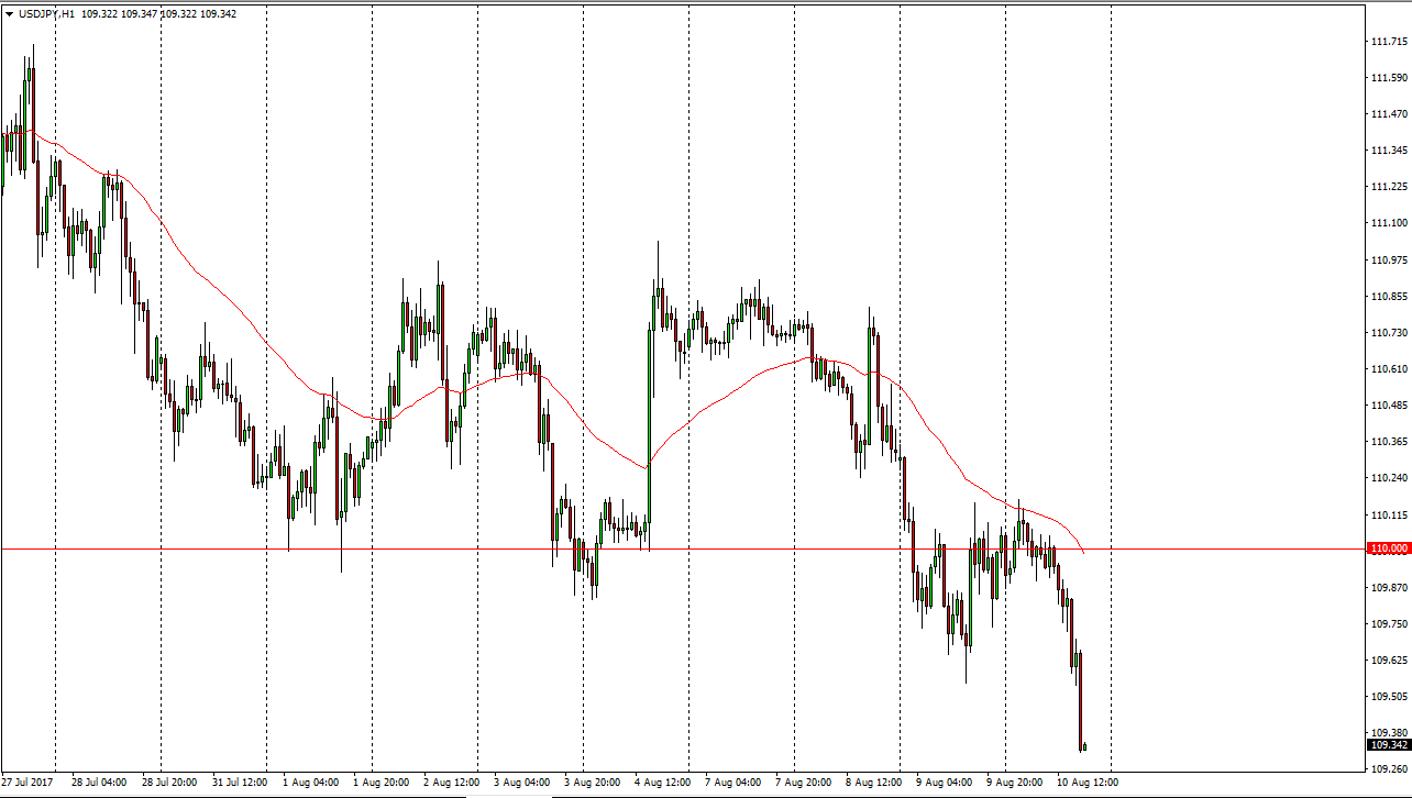 The USD/JPY pair broke down during the session on Thursday, slicing through what little bit of support we had seen at the 109.50 level. I believe that