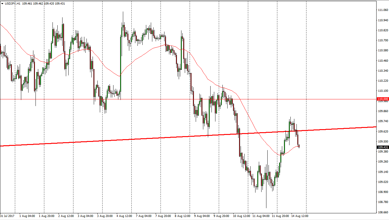 The US dollar fell against the Japanese yen after initially surging much higher during the day on Monday. We are testing an uptrend line that had been broken, so if we can break above the 110 handle, this market should be very bullish. Ultimately, I think that a move above there should send this market looking towards the 112.50 level. Alternately, we could find ourselves drifting lower from here, and quite frankly I think it comes down to the risk appetite of traders around the world. A lot of this has been due to the North Korea nonsense, which seems to be cooling down finally. Because of this, it looks like the safety trade may be abating a bit, and with that being the case I think we will start to focus on the interest rate outlook of the United States and Japan. That favors the US dollar in general, and I think that the breaking above the 110 level will bring in a fresh batch of buying orders.