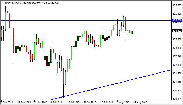 The USD/JPY pair went back and forth on Monday, essentially settling nothing. With this, it appears that the market isn’t ready to go anywhere at this point in time. We are looking for pullbacks in order to start buying on value, but until then there really isn’t much to do in this market and we will sit on the sidelines. The 125 level above is a massive barrier, and if we can break above there, we think the market could continue to go much higher levels. We expect this to happen, but obviously we are not ready.