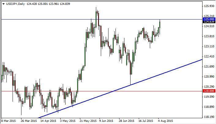 The USD/JPY pair initially fell during the course of the session on Wednesday, but found enough support below to turn things back around and slammed into the 125 handle. If we can get above this area, we feel that this market should go much higher, and with a Nonfarm Payroll Numbers coming out on Friday, that could be the catalyst. Any pullback at this point in time should be thought of as a buying opportunity as the market should continue to go higher. We believe that the market will be highly sensitive to the jobs number, so even if we don’t get that move between now and then, it should be shortly afterwards.
