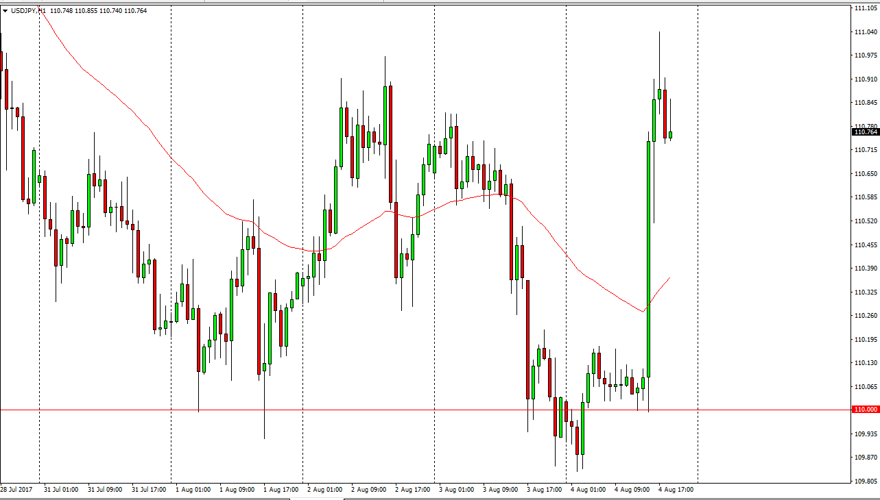 The US dollar went sideways initially on Friday, hovering above the 110 level. We shot to the upside after that, as the jobs number was much better than