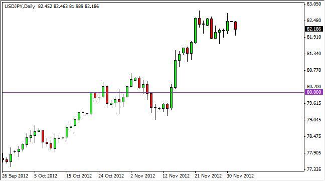 The USD/JPY pair fell during the session on Monday as the 82.50 level continues to offer significant resistance. However, we do know that this market is well supported somewhere around the 82 handle, and the Bank of Japan is actively working against the value the Yen. Adding to the pressure on the Bank of Japan is the fact that the opposition leader Mr. Abe looks very likely to be elected in the near-term.
