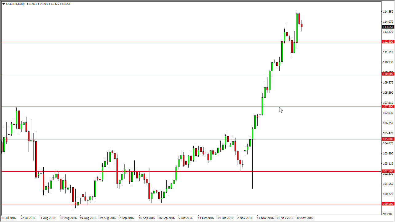 The USD/JPY pair fell slightly during the Friday session after the jobs number came out at roughly expected figures. However, there seems to be less inflationary pressure than anticipated, and that of course will bring back some of the expectations for future rate hikes. Nonetheless, this is a market that is extremely overbought, so a pullback is healthy. I need to see some type of significant pullback in order to start taking advantage of an obvious uptrend again. I would love to see this market pullback all the way to the 110 handle but may not get my wish.