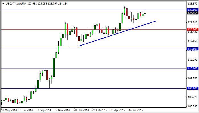 The USD/JPY pair initially tried to rally during the course of the week, but we found the 125 level to be a bit too resistive. By doing so, we ended up forming a shooting star, which of course is a very negative sign. The uptrend line below should continue to this market going higher, but a pullback may be necessary in order to break out above the 125 handle. We do think it happens given enough time, but at this moment in time we are going to look for value and support at lower levels before putting money to work.