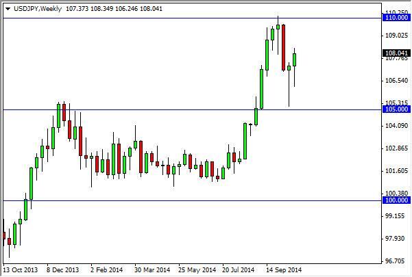 The USD/JPY pair fell during the course of the week, but found enough support below to turn things back around and form a hammer yet again. This is the second hammer in a row, and as a result it appears of the market will then head to the 110 level. With that, the 110 level will be tested and eventually broken above as we had to the 115 level. The 105 level below should be a bit of a “floor”, as the market should not go below there. If it did, things would change drastically, but at this point in time that looks very unlikely.
