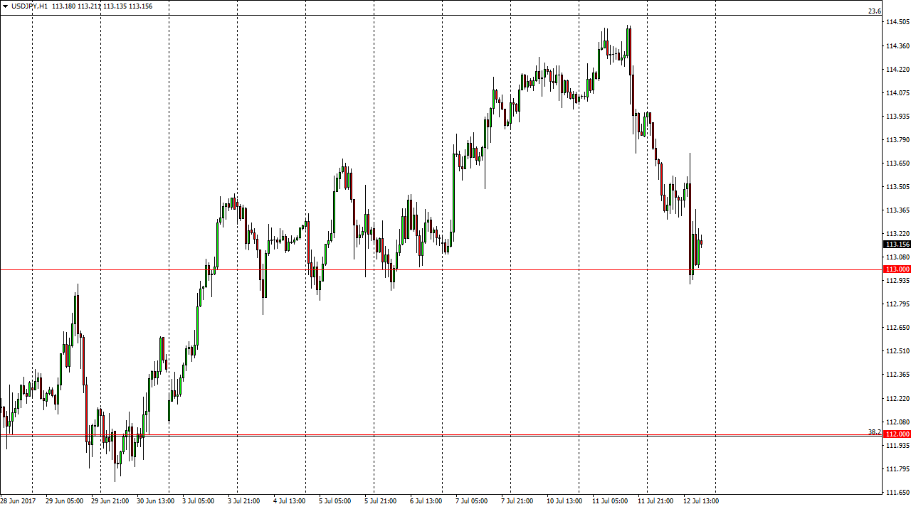 The USD/JPY pair fell apart during the trading session on Wednesday as Janet Yellen testified in front of Congress. Essentially, she suggested that although the market can expect interest rates hikes, the reality is that it will be slow. That may indicate that the pair has been a bit overbought. A breakdown below the 113 level should send this market looking for the 112 level, and that gets this market bearish for the short term. Longer-term, I still believe that we probably go higher, but we need to build up momentum to break above the massive resistance at the 115 handle. In the meantime, I think that longer-term trading should be a “buy on the dips” type of scenario, and that might be what we’re seeing.
