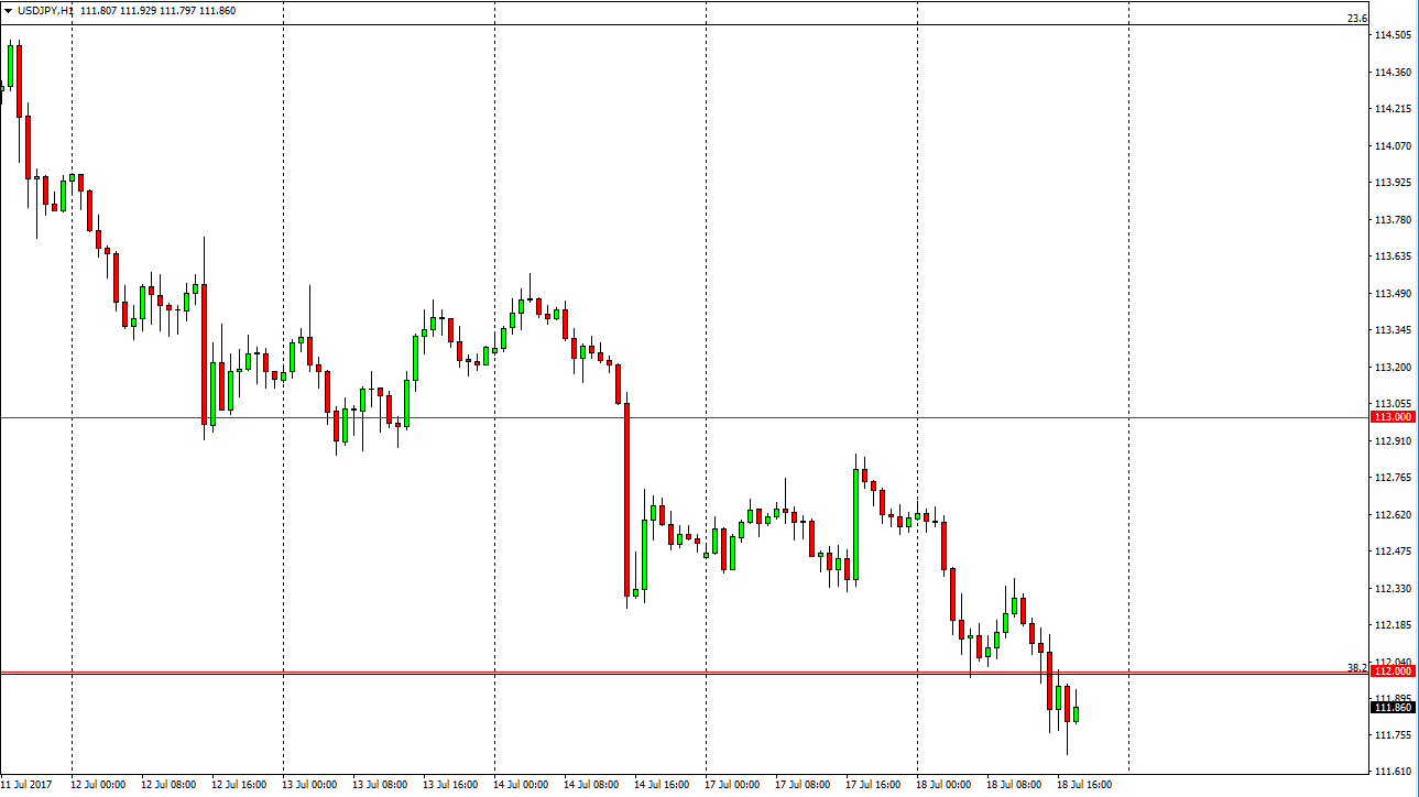 The USD/JPY pair fell during the day on Tuesday, slamming into the 112 level, and then eventually falling through it. However, later in the day it looks