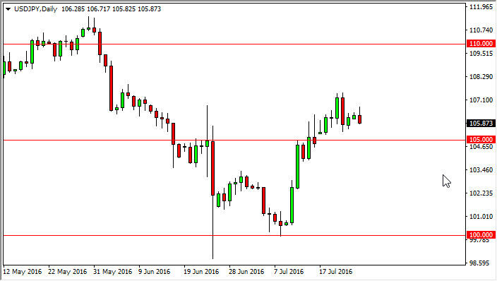The USD/JPY pair initially rallied during the course of the session on Monday, but turned right back around to form a shooting star. The shooting star of course is a negative sign, and we could drop down to the 105 level as a result. There should be quite a bit of support there though, so a supportive candle in that general vicinity should be a buying opportunity. On the other hand, if we can break above the top of the shooting star for the day on Monday, then that would be buying opportunity as well.