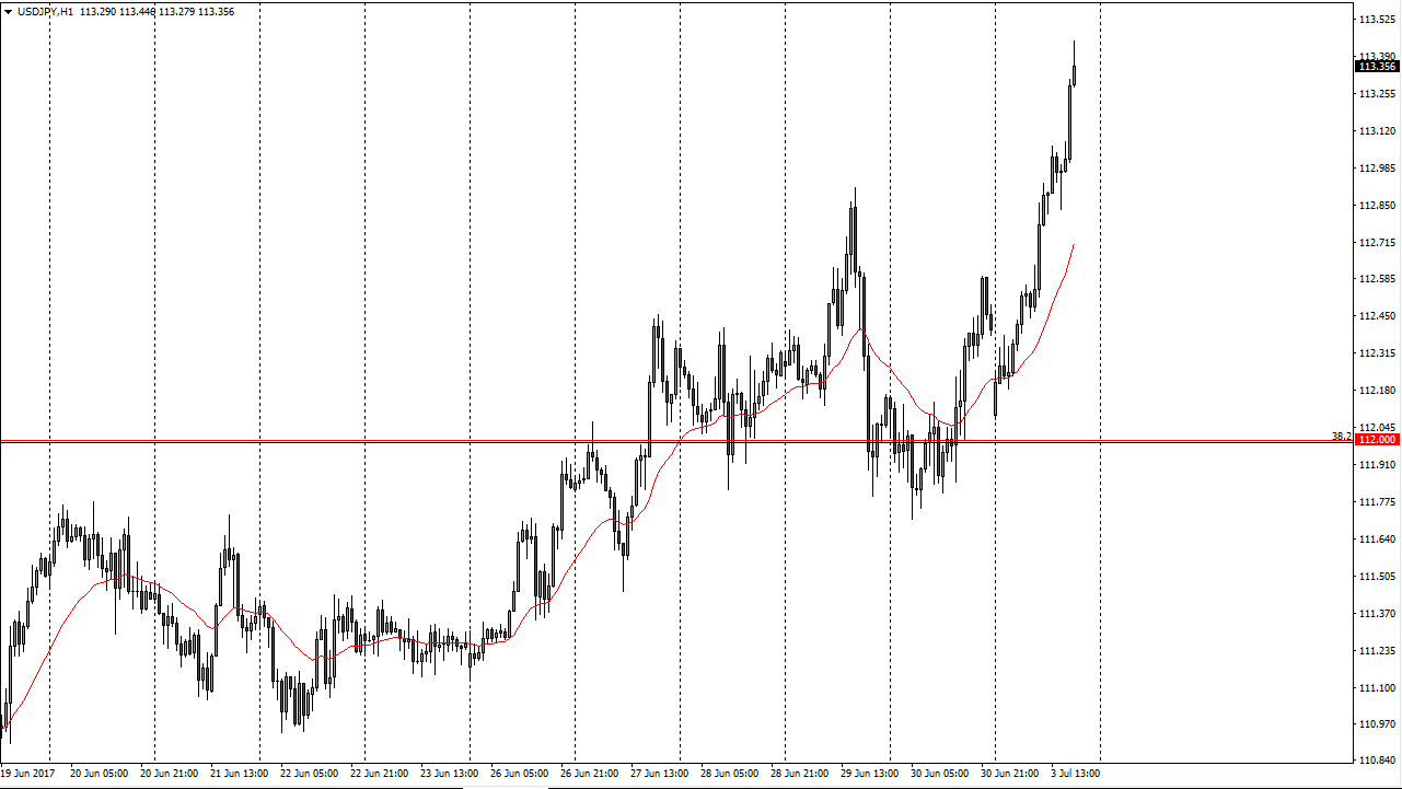 The US dollar skyrocketed against the Japanese yen during the session on Monday, touching the 113.50 level during the day. We are starting to pull back a little bit, as we are bit overextended, but quite frankly it looks as if the buyers are going to jump back into the market every time we pull back. I think that the 113 level should be supportive, just as the 112-level wall almost certainly be bullish as well. I think that the US dollar should continue to strengthen in general, as we are starting to see strength in the US dollar against currency such as the Euro, and the British pound. If that’s the case, it will certainly rally against the Japanese yen which of course is a softer currency currently.