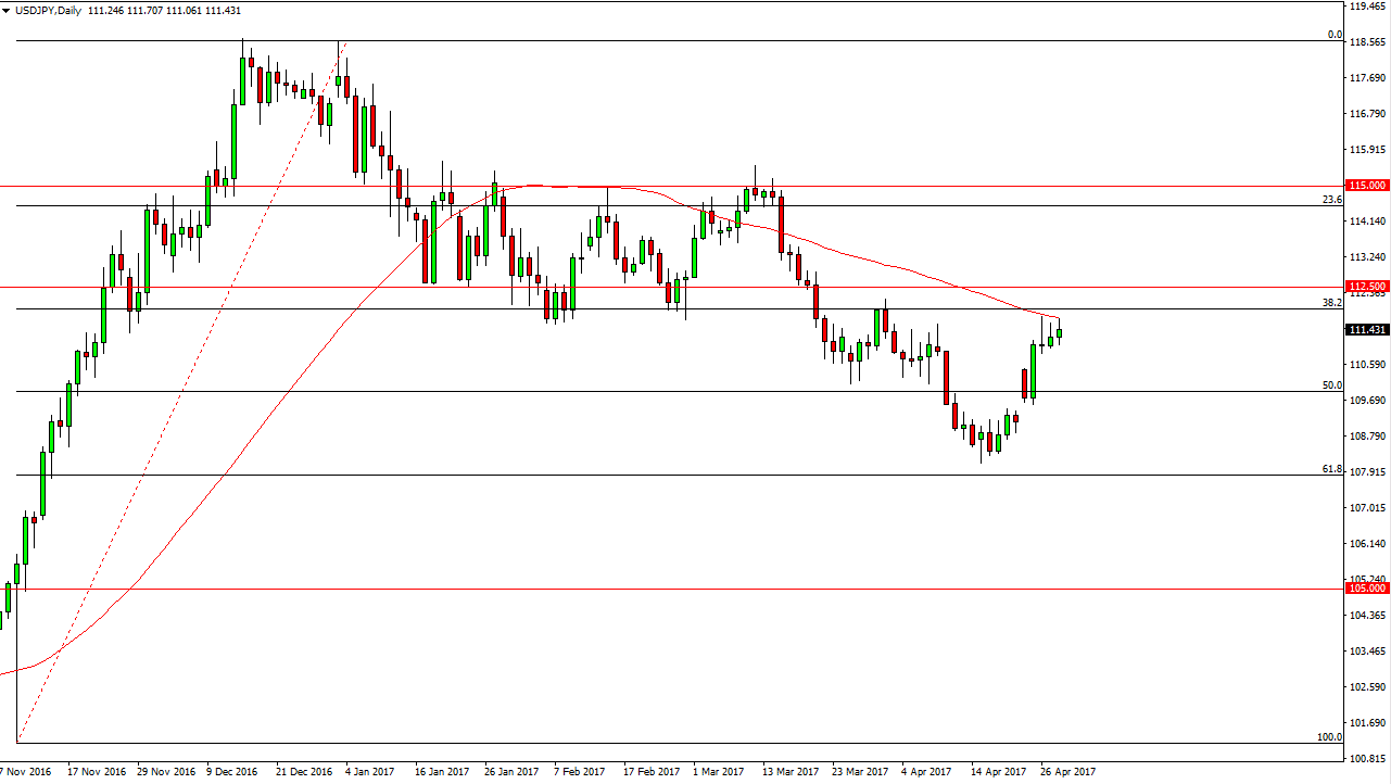 The USD/JPY pair rallied on Friday, but found a bit of resistance at the 50-day exponential moving average. Nonetheless, it looks as if we are trying to