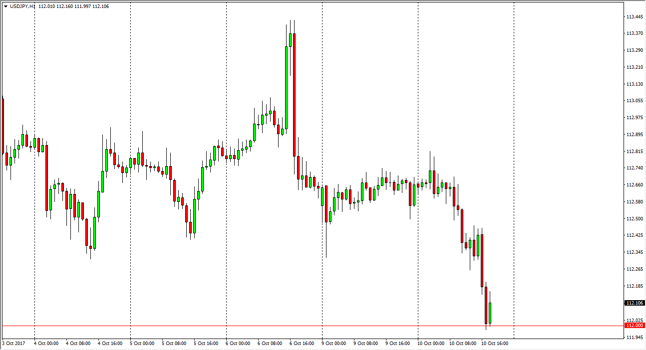 The US dollar fell apart against the Japanese yen during the trading session on Tuesday, as we got a bit of a “risk off” type of day. However, the 112