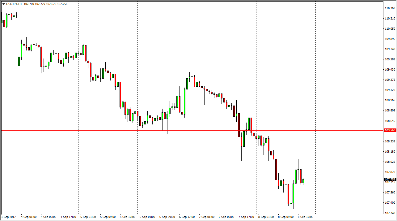 The USD/JPY pair broke down significantly during the day on Friday, but did bounce later in the session. Ultimately, I believe that the market continues to go much lower, and the breakdown below the 108.50 level is indeed a very negative sign. Because of this, I suspect that this market should continue to drift lower, perhaps reaching towards the 105-level underneath. This is a very negative sign, and the idea of the Federal Reserve not being able to raise interest rates anytime soon should continue to weigh upon this market. Pay attention equities, this pair can be influenced by which direction they go as well.