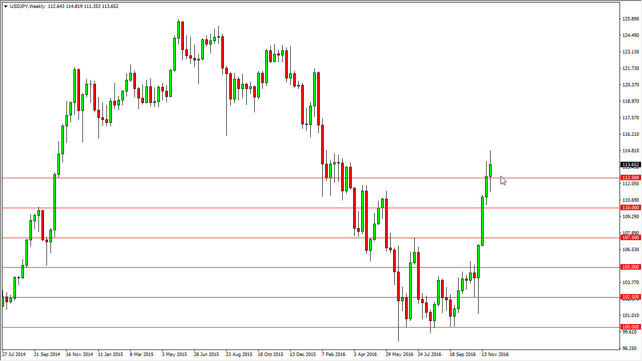 The USD/JPY pair went back and forth during the week, as we continue to see quite a bit of volatility. This is a market that is overbought at the moment