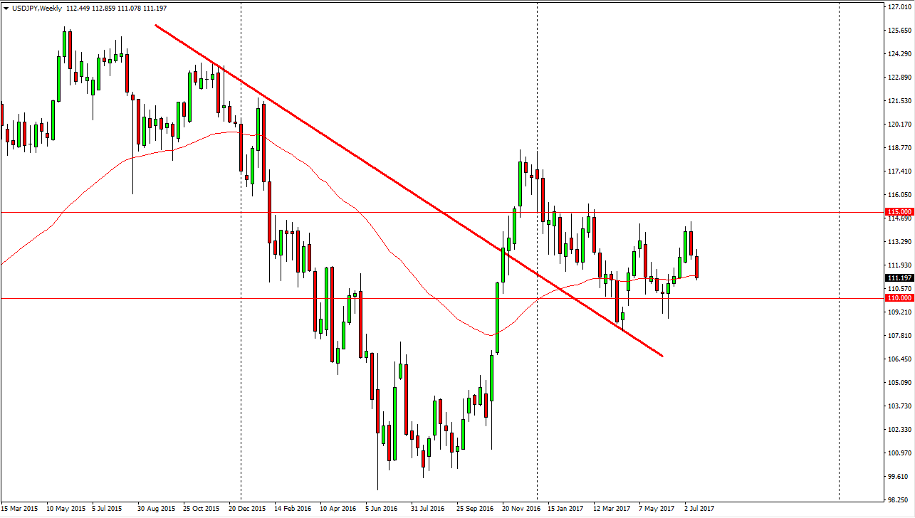 The USD/JPY pair fell during the week, slicing through the 112 level rather handily. The market looks likely to find support at the 110 handle though, and